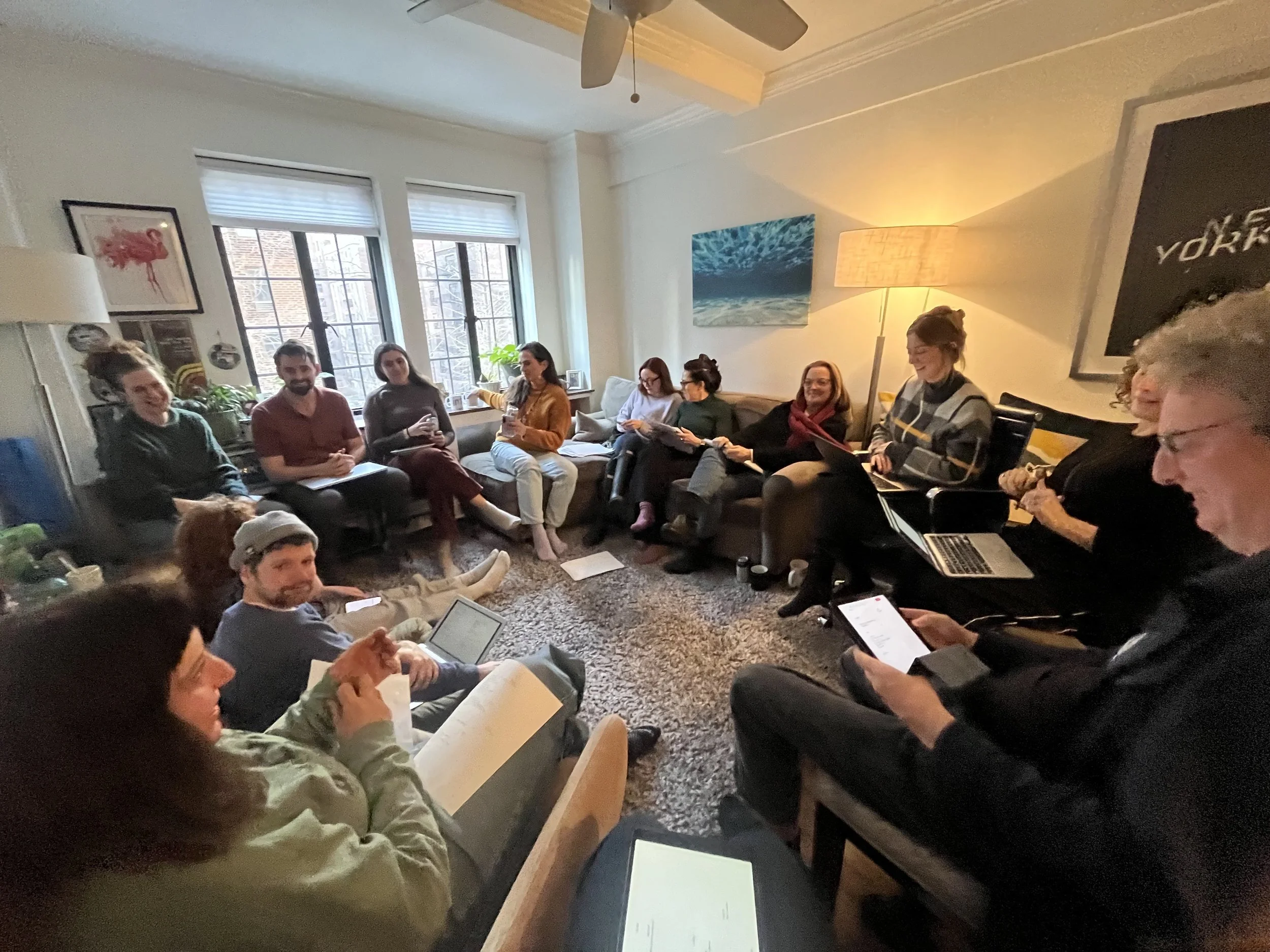 All the Irish gathered in my living room to give me the gift of hearing this beautiful play about my journey to Ireland in 2003.